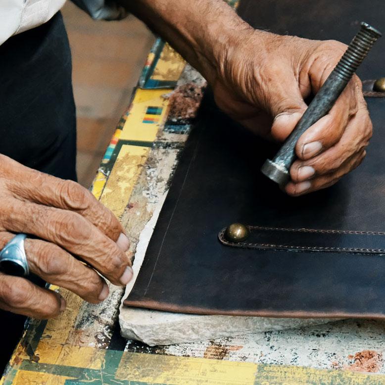 Our bags are made from premium cowhide leather. It is carefully selected and processed by skilled craftsmen. We chose cowhide leather because it meets our high standards for quality, durability, and naturalness. It is strong and supple at the same time, making it an excellent raw material for manufacturing our high-quality products. We use the leather in its most natural form - Full-Grain. This means that the leather is processed with all its layers in its full strength, which averages 1.7 mm and is thicker than the material of most leather bags. It is characterized by great resistance and naturalness. The hides come from animals in Northern Pakistan.