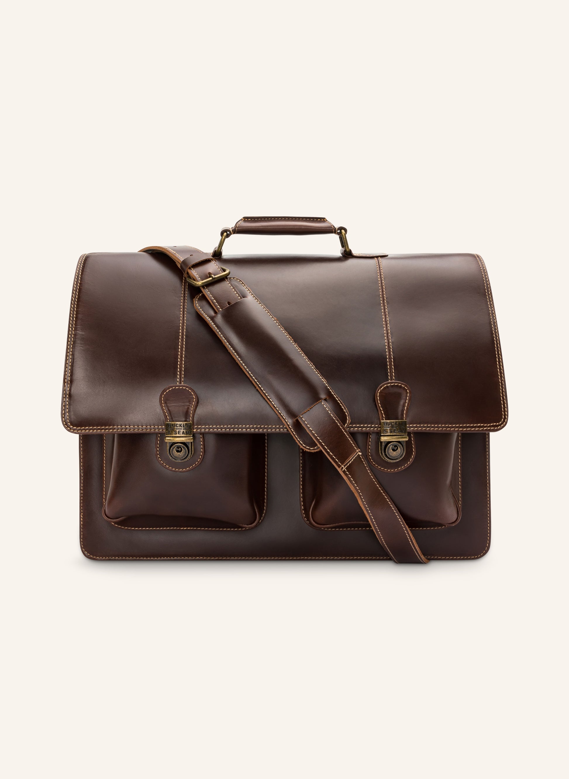 Every product from the Buckle & Seam brand is unique. Our men's collections are handcrafted from leather in its highest quality form. This form is referred to as 'Full Grain,' which means the leather is processed in its full thickness. This creates an exceptionally durable end product that you can carry by your side for years. The way our models are crafted also ensures that each of them develops its own patina over the years. Just like you, your bag only becomes more beautiful with age.