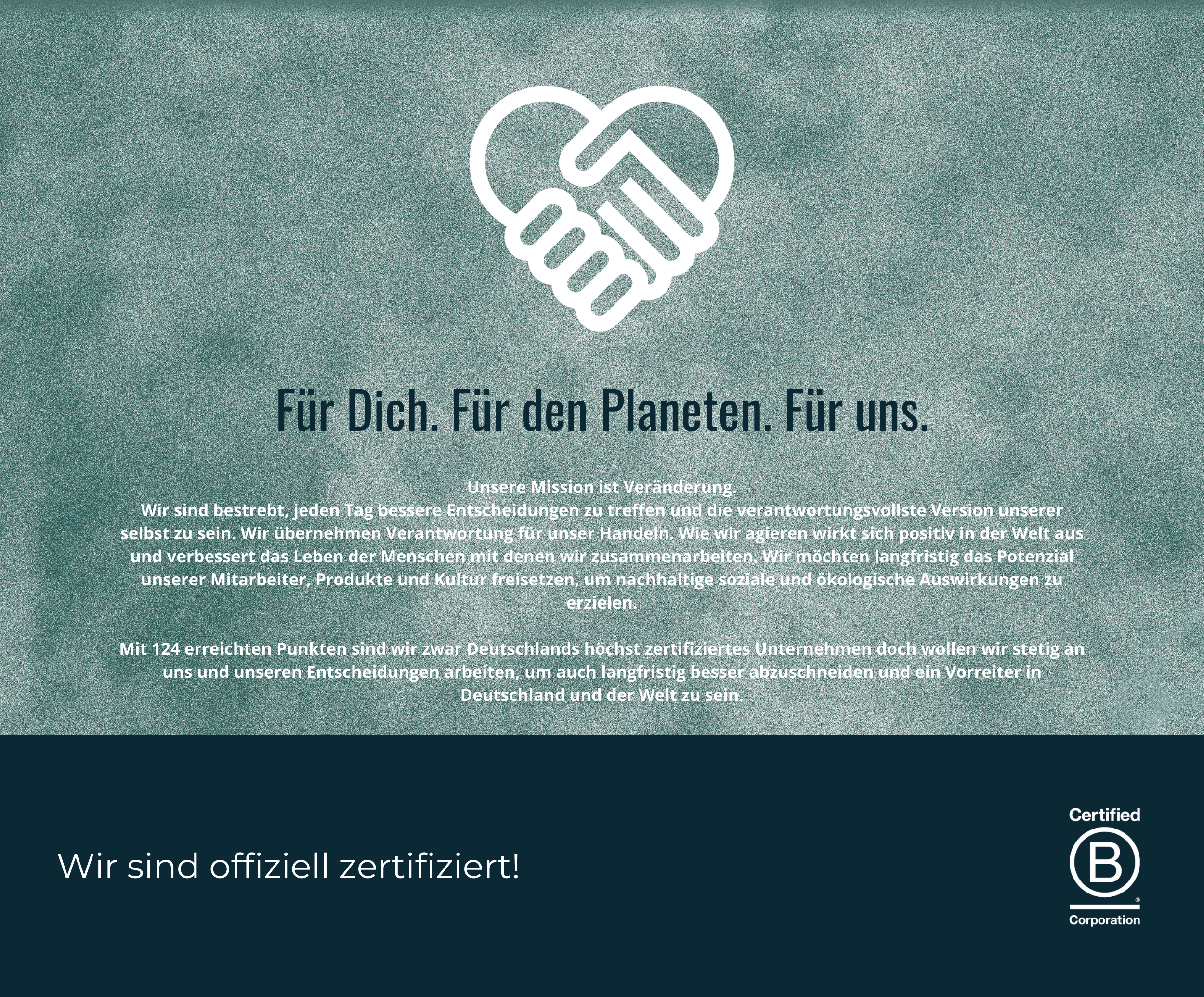 Wir sind das höchst bewertete B Corp Unternehmen in ganz Deutschland!