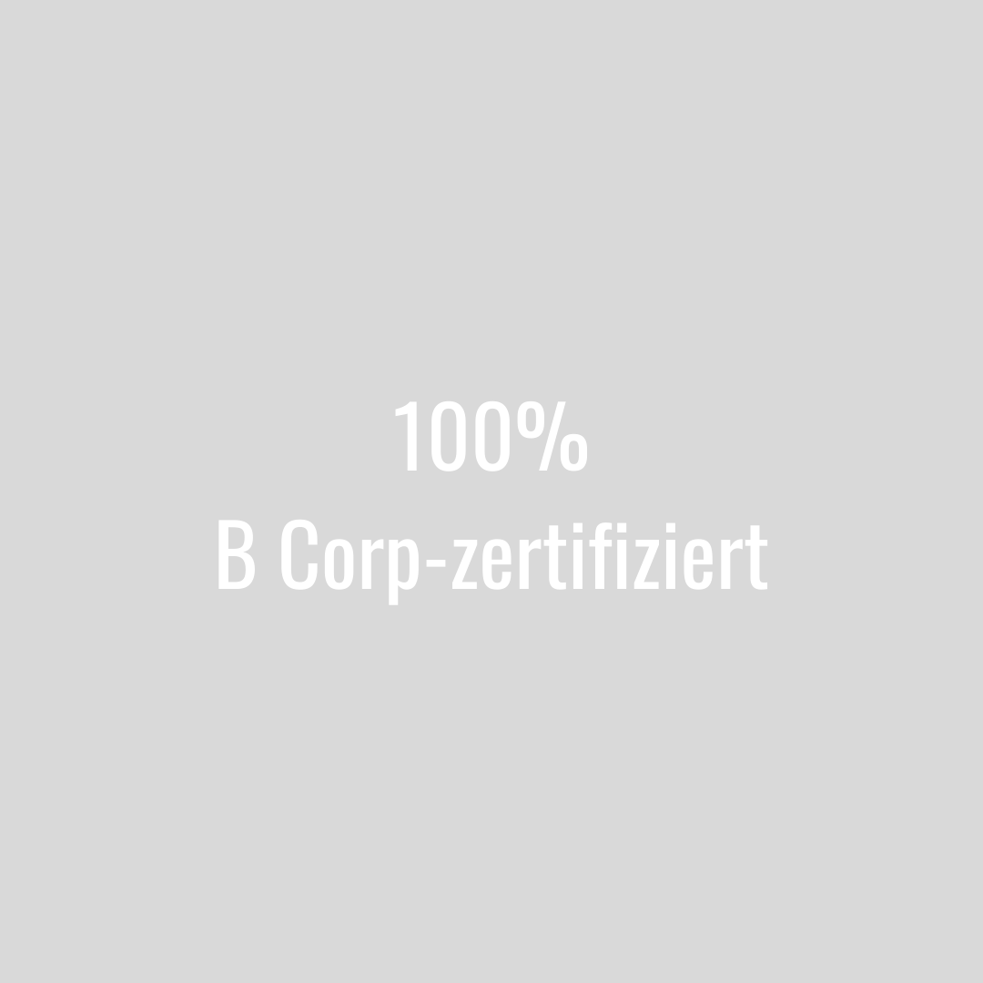 Als B Corp-zertifiziertes Unternehmen verpflichten wir uns zu gesellschaftlichem Mehrwert und ökologischer Nachhaltigkeit. Mit 124.1 Punkten sind wir das höchst bewertete B Corp Unternehmen in ganz Deutschland!