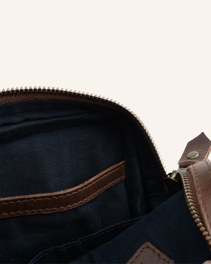 - Schultergurt: Verstellbarer, reißfester Canvas-Schulterriemen mit Lederverstärkung
