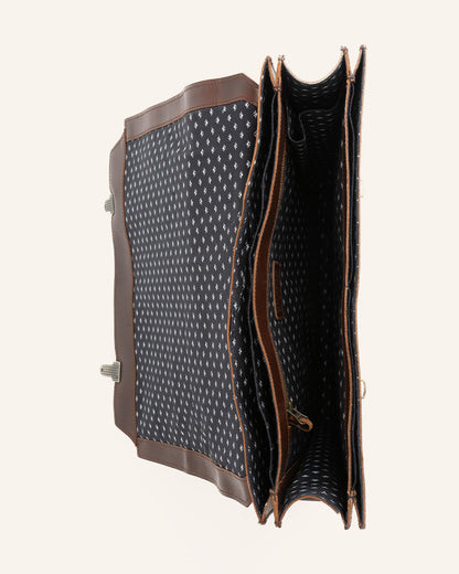 Die moderne Leder Aktentasche Notes vereint klassisches Design mit hoher Funktionalität. Die geräumigen Fächer bieten genug Platz für wichtige Unterlagen und einen Laptop oder Macbook bis zu einer Größe von 16 Zoll. Zwei weitere Einsteckfächer auf der Vorderseite, sowie ein zusätzliches Reißverschlußfach, bieten schnellen Zugriff auf Smartphone, Geldbörse und Schlüssel. Die Trolley-Lösung auf der Rückseite sowie der mitgelieferte Schultergurt ermöglichen einen angenehmen Reisekomfort.