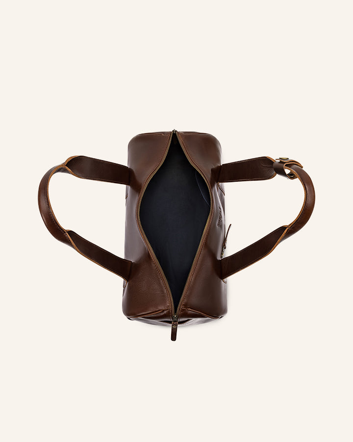 Bei Chap haben wir mit Absicht auf einen Schultergurt verzichtet, da diese Ledertasche den Seesäcken nachempfunden ist. Wir wollten ein minimalistisches Design beibehalten und gleichzeitig sicherstellen, dass die Reisetasche bequem in der Hand sowie auch über der Schulter getragen werden kann. Die verstärkten Tragegriffe sind leicht gepolstert, dass der Duffle Bag in jeder Situation einen hohen Tragekomfort bietet. Das handgegerbte Leder ist sehr robust und schützt all Deine Wertgegenstände und Essentials vor äußeren Einwirkungen.